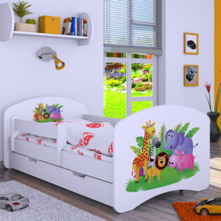 • Drveni dječji krevet Happy safari s ladicom - 190x90