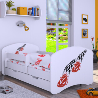 • Drveni dječji krevet Happy utrka s ladicom - 190x90