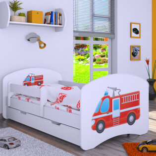 • Drveni dječji krevet Happy vatrogasno vozilo s ladicom - 190x90