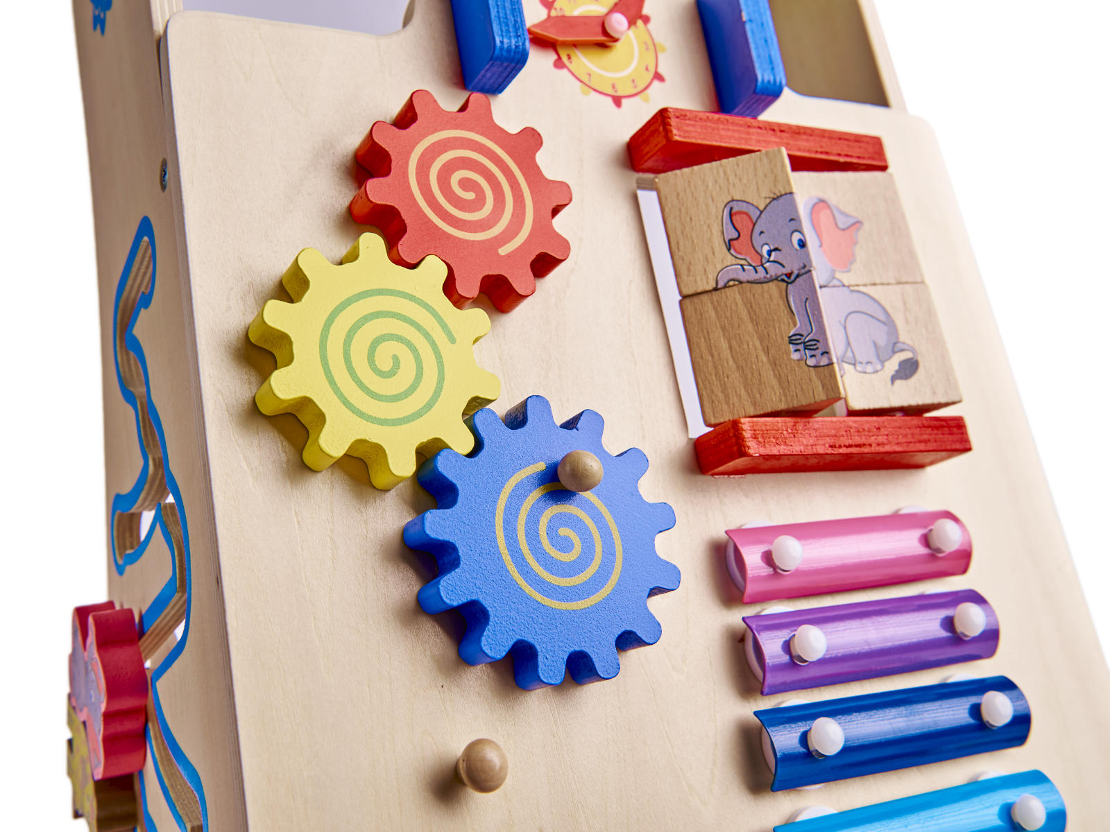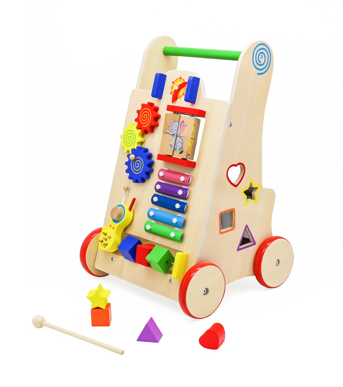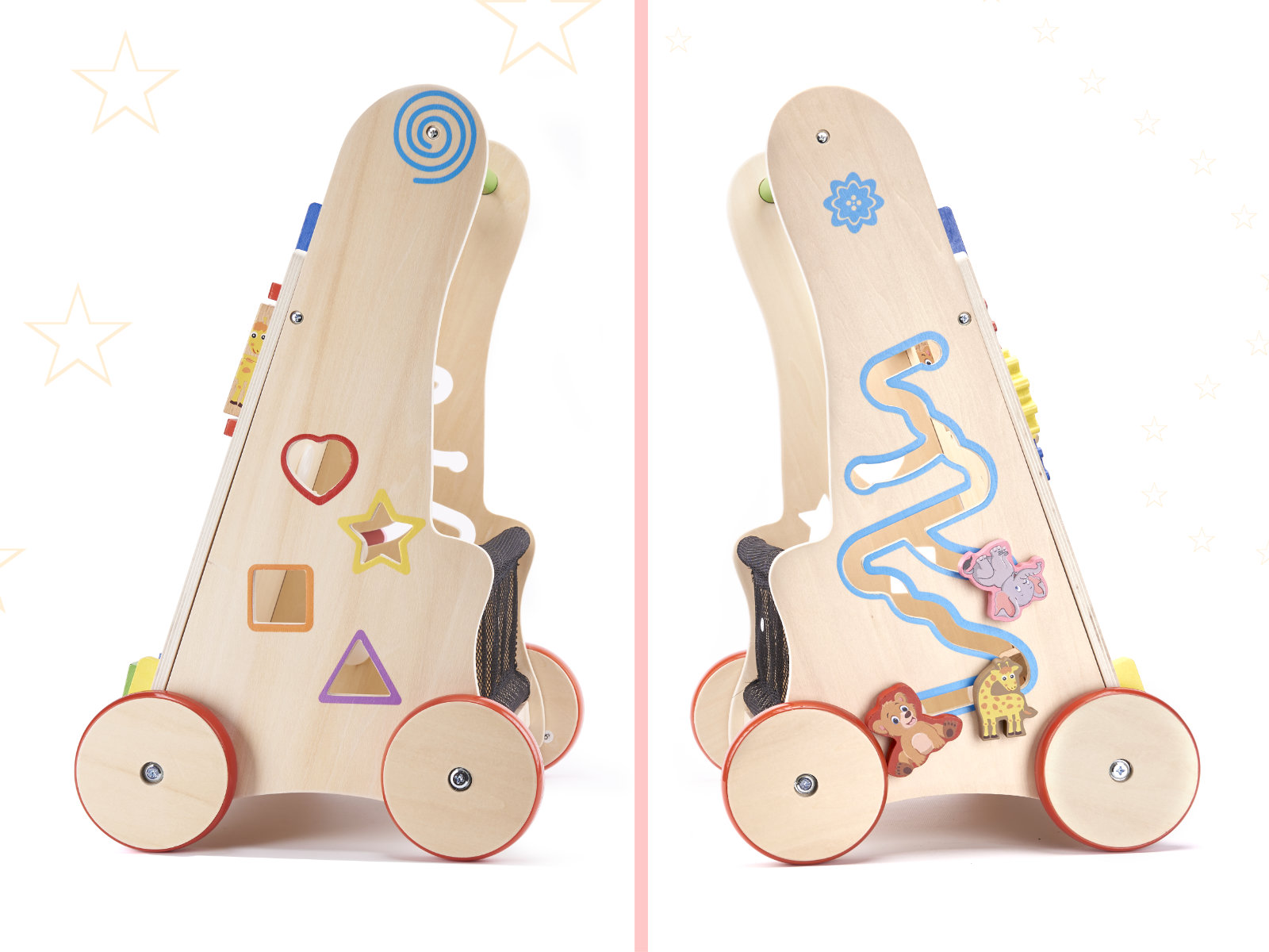 Didaktička dječja guralica pomaže mališanima u prvim koracima. Osigurava stabilnost i ravnotežu te nudi razne interaktivne igre za razvoj motorike.