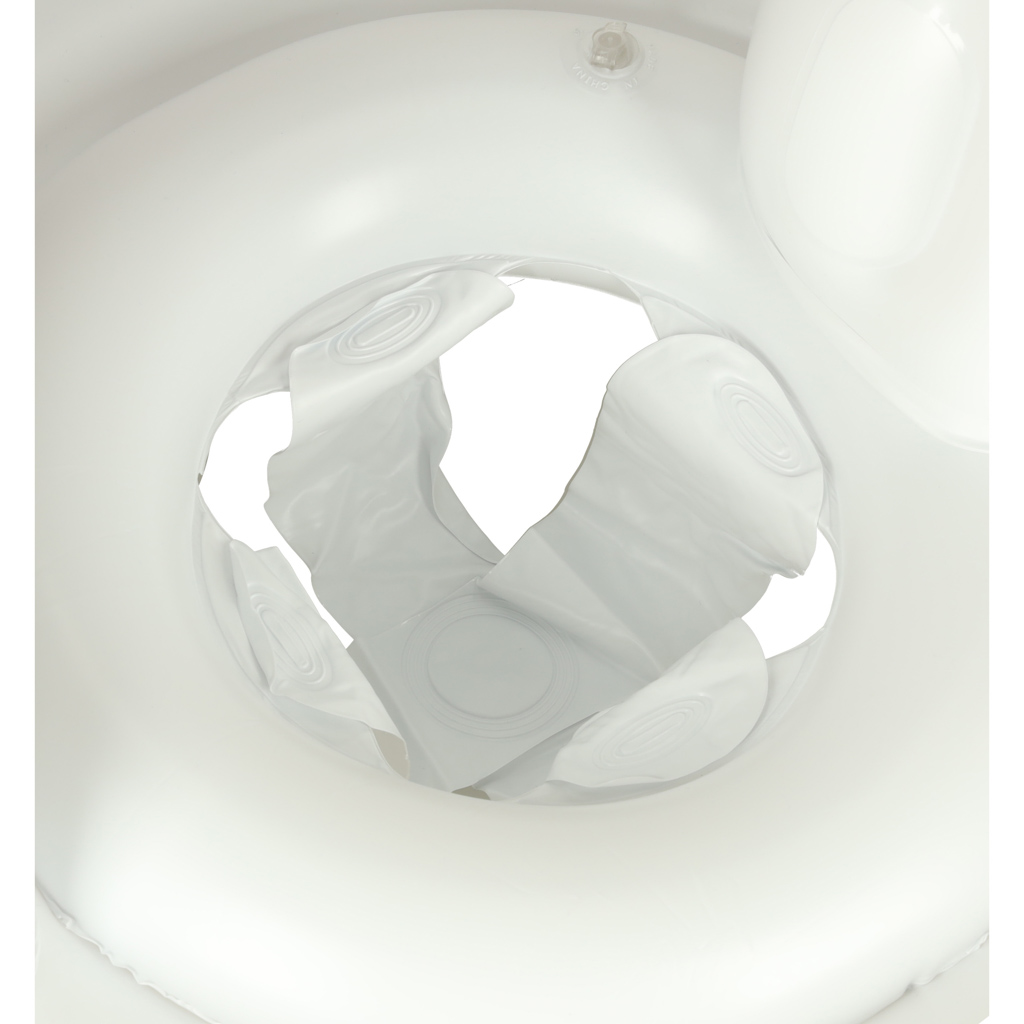 Izrađen je od čvrstog i izdržljivog PVC materijala, što osigurava otpornost na habanje i sigurnu upotrebu. Udobno sjedalo i otvori za noge pružaju stabilnost i omogućuju prirodno kretanje u vodi, dok naslon za leđa dodatno povećava udobnost i sigurnost tijekom igre. Kolut ima promjer od 62 cm, što ga čini kompaktnim i jednostavnim za nošenje i skladištenje. Maksimalna nosivost iznosi 15 do 20 kg, što ga čini idealnim za djecu najmlađe dobi.