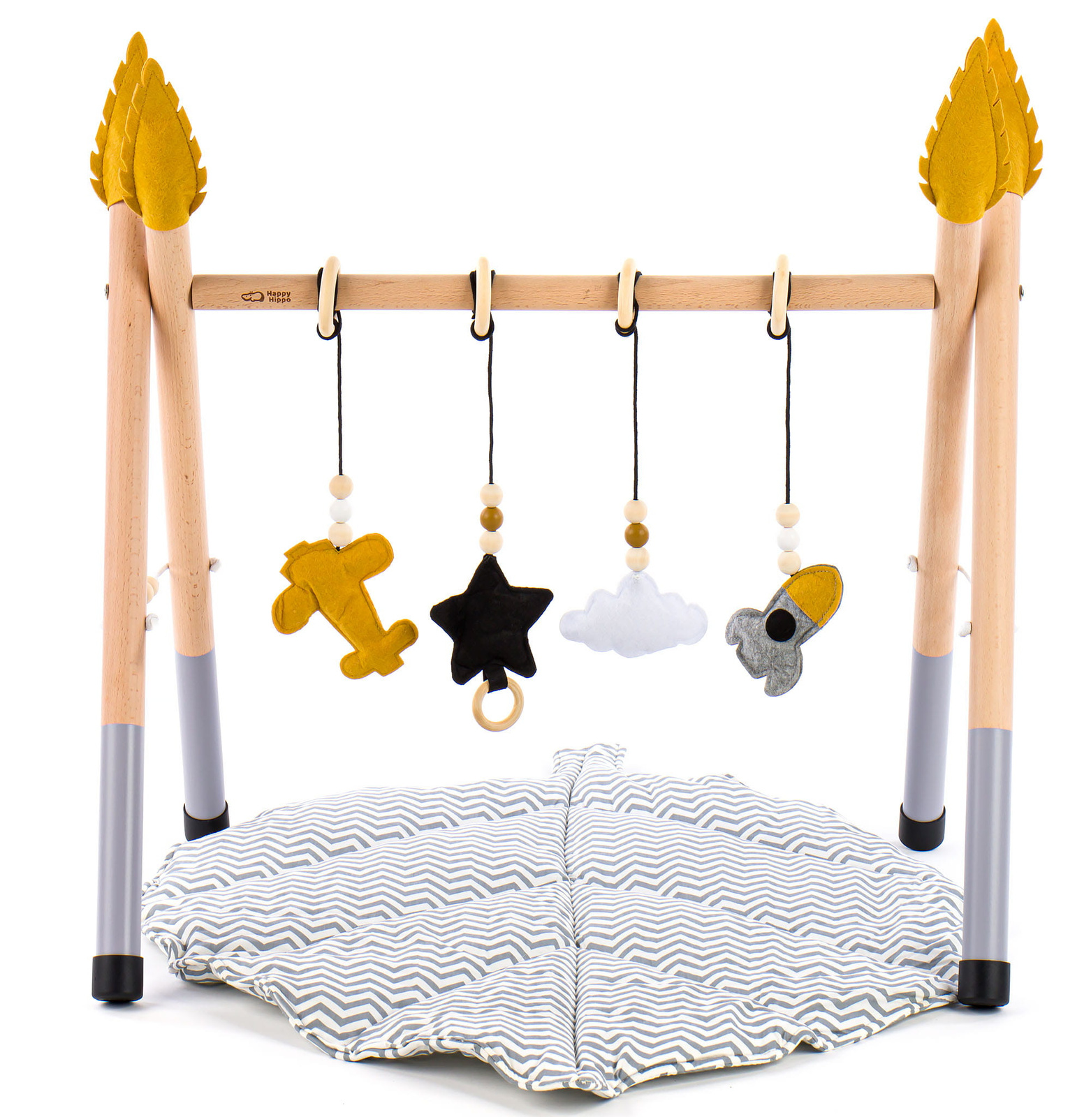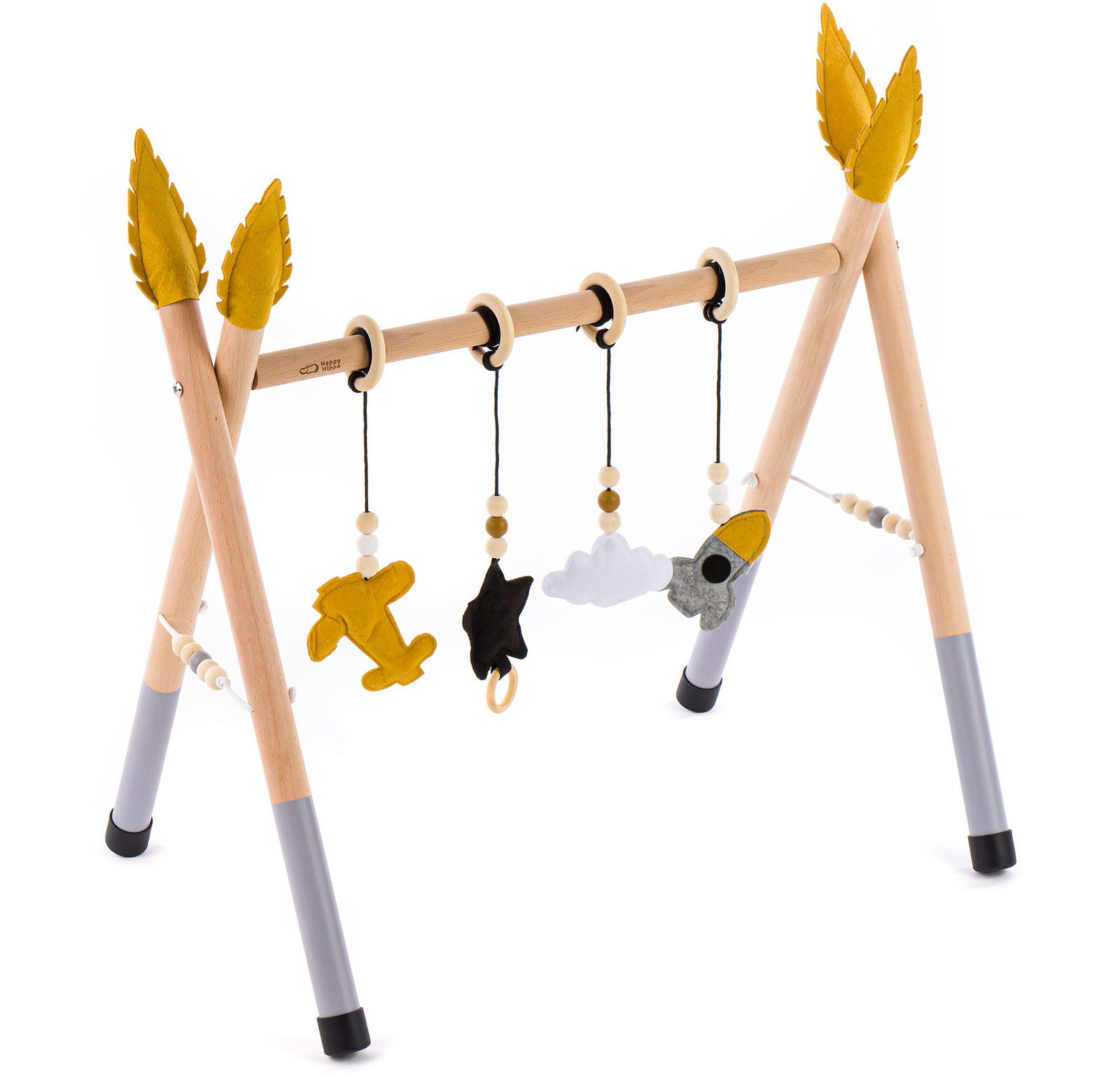 Ovaj drveni baby gym idealan je za bebe već od najranijih tjedana života. Stvoren je kako bi potaknuo prirodnu znatiželju i omogućio razvoj kroz igru. Konstrukcija je stabilna. Oblik je prilagođen djetetu. Beba se može sigurno okretati, pružati ručice i doticati viseće elemente.