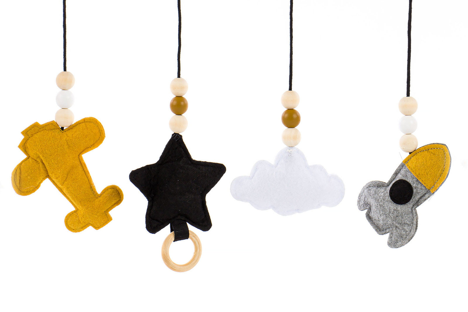 Na stalku se nalaze četiri mekane viseće igračke. Ukrašene su perlicama i dodatnim drvenim elementima. Svaka igračka potiče bebu na posezanje i pomicanje ruku. Vise pomoću čvrstih vezica. Visina se može regulirati. To omogućuje prilagodbu bebinim mogućnostima. Beba tako uči koordinaciju, jača mišiće i razvija motoriku.